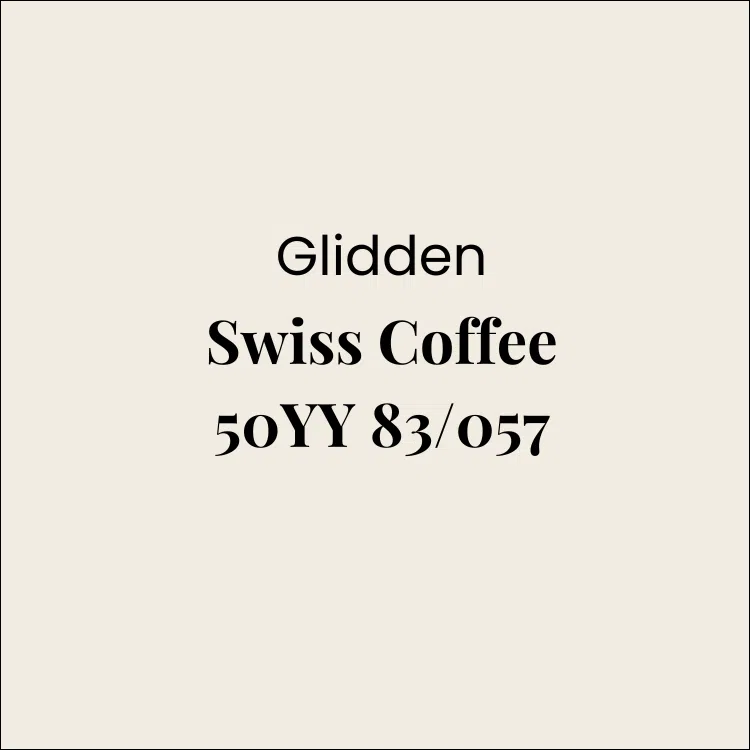 Glidden Swiss Coffee (Sample) follows the general Swiss Coffee pattern: warm, creamy, and softly inviting. It’s actually one of the closest matches to Benjamin Moore Swiss Coffee paint, although its undertones lean more toward reds than greens.